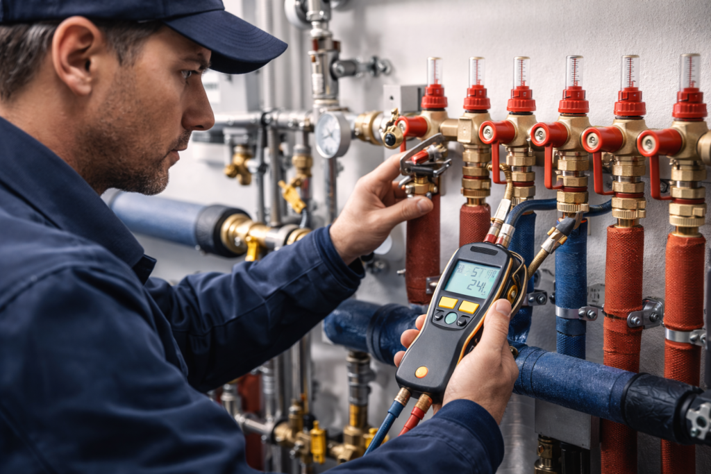 Le réglage des organes d’équilibrage consiste à ajuster les vannes d’équilibrage et les différents dispositifs hydrauliques présents sur le réseau de chauffage afin de garantir une répartition optimale des débits d’eau chaude dans l’ensemble de l’installation. Avec le temps ou lors de modifications du réseau, certains circuits peuvent recevoir trop de débit tandis que d’autres en reçoivent insuffisamment, ce qui entraîne des déséquilibres de température entre les différents logements ou zones du bâtiment.